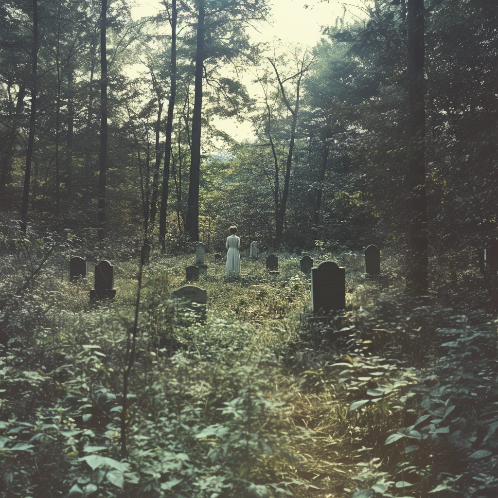 When he wheeled around, the woman was gone. A gust of wind whipped through the clearing and blew aside the ferns concealing the tiny headstone. He read the inscription. Then it all came back to him. . .