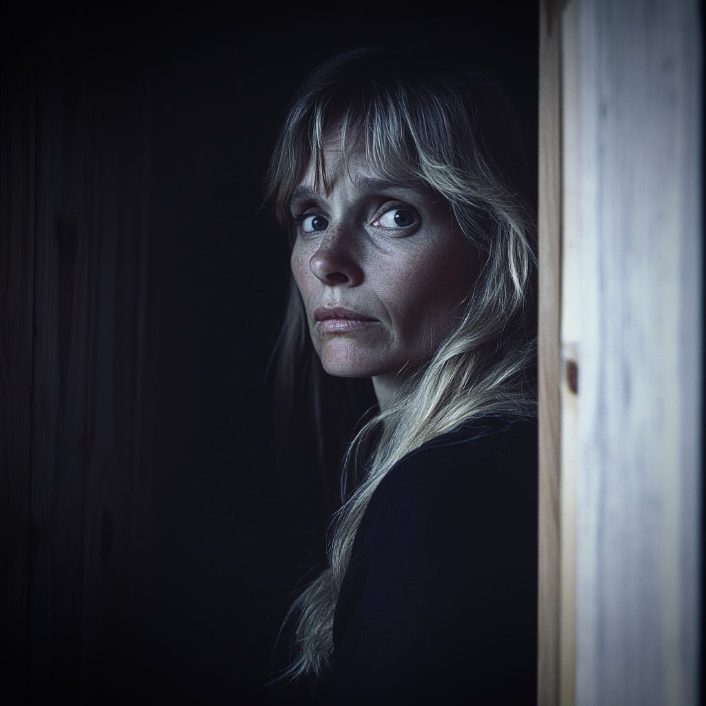 He glanced at his daughter warily. “I wanna ask you somethin’. When we come out here last year, did you see someone standin’ in the clearing? It was sunny and hazy. Remember?”
