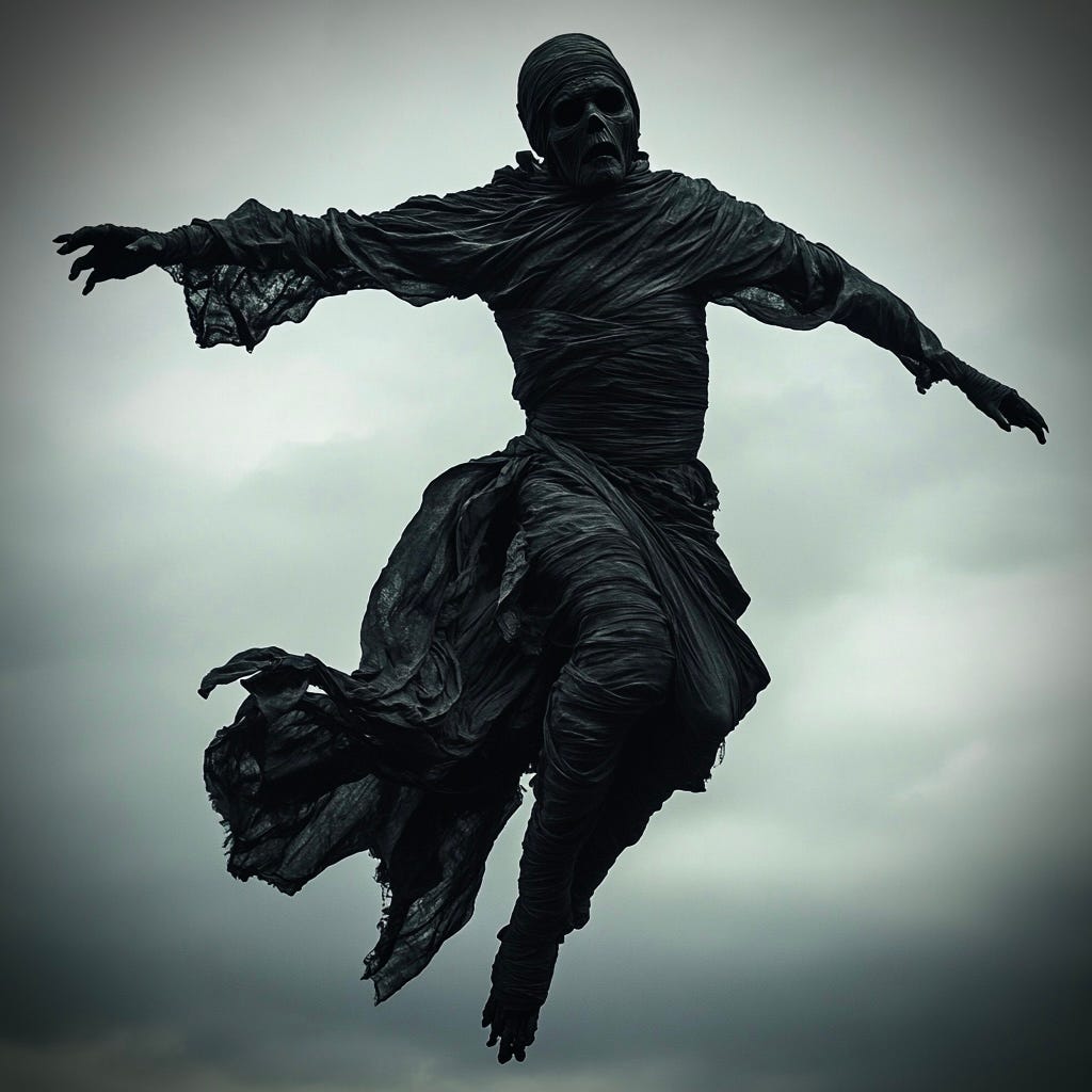 The figure croaked like a vulture, sprang into the air and began to drift toward the screaming thief. It landed on Marcian and merged with him until the young man’s flesh evanesced and a heap of bones lay on the cornice.