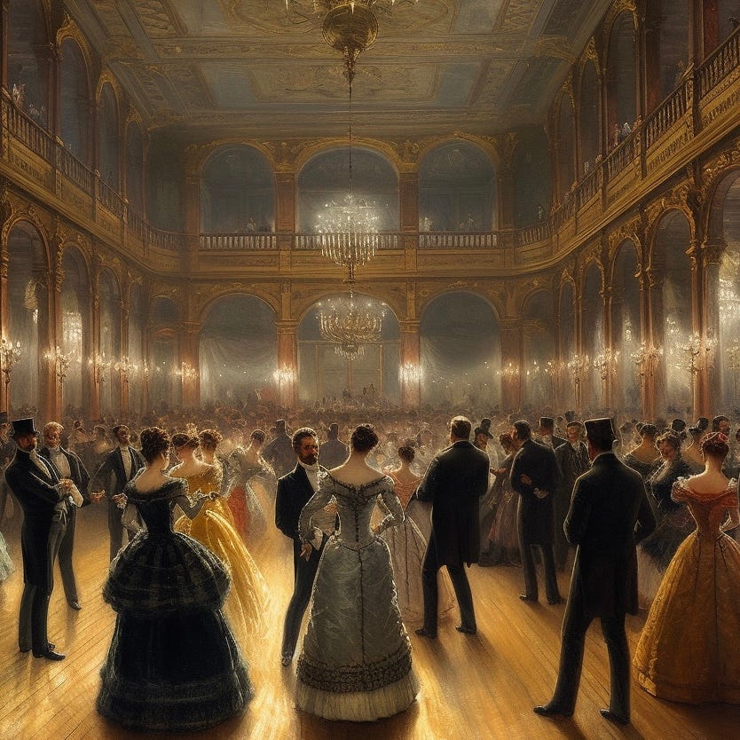 An old woman sat on a gilt chair against the wall of a crowded ballroom. Her face was powdered and lightly rouged. She wore a diamond tiara and white gloves. The débutantes giggled at her from behind their fans. But those who had known her for many years were more respectful; and when they locked eyes with her as they waltzed past, they smiled before whirling away.