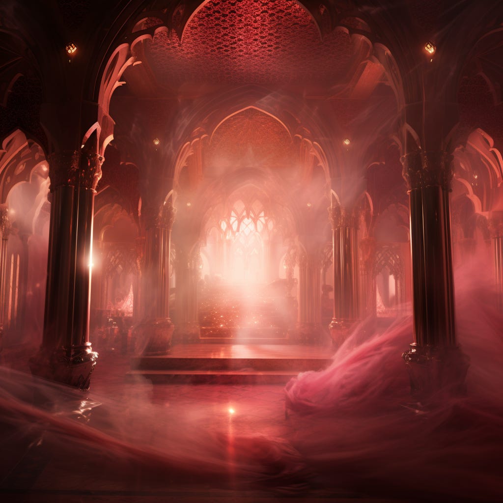 She crossed the threshold into a vestibule, where the air was cool and where the burbling of water could be heard from the marble fountains all around. She slaked her thirst from a scalloped basin, and contemplated the lambent mists, which wreathed the slender columns that seemed to extend forever in front of her and rise into the very heavens above.